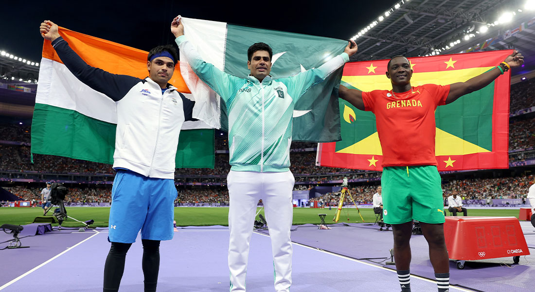 پیرس اولمپکس میں ایتھلیٹ ارشدندیم نے پاکستانیوں کا سالوں کا انتظار ختم کردیا اور پھر کامیابی بھی ایسی ملی کہ نیرج چوپڑا، اینڈرسن پیٹرز، جولیئن ویبر جیسے بڑے بڑے کھلاڑی بھی منہ دیکھتے رہے اور ارشد گولڈ میڈل لے اڑے۔جویلین تھرو کے اس ایونٹ میں ویسے تو 12 کھلاڑی ان ایکشن تھے لیکن پاکستان اور بھارت کی نظریں صرف ارشدندیم اور نیرج چوپڑا پر جڑی تھیں۔