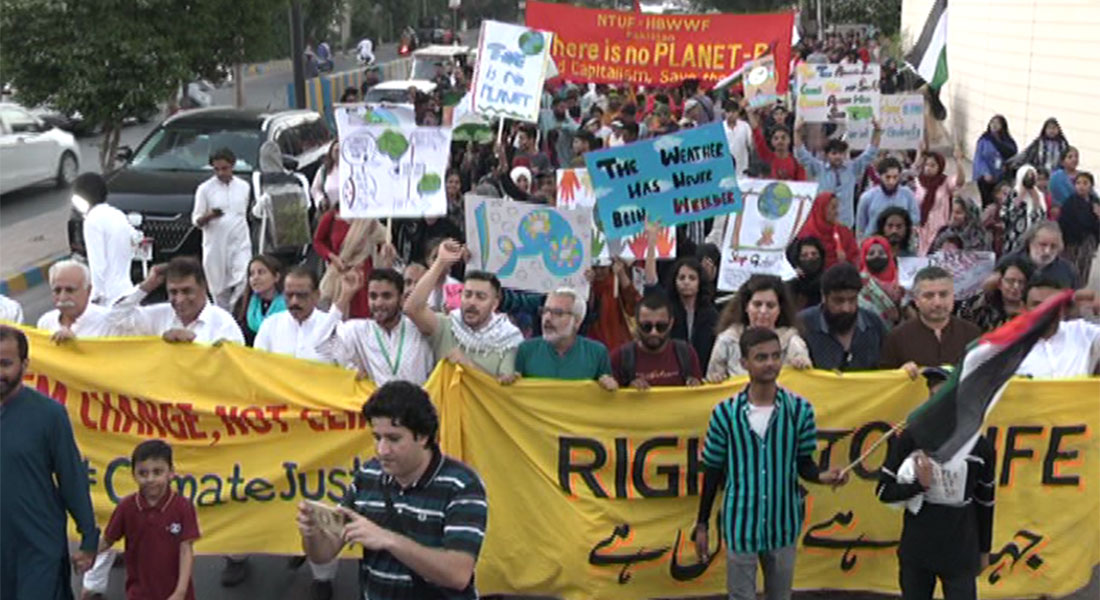 کلائیمنٹ مارچ میں مقررین نے کراچی اور اسکے باسیوں کو درپیش موسمیاتی بحران کا زکر کرتے ہوئے کہا کہ حالیہ برسوں میں موسمیاتی تبدیلی ،،،،جان لیوا ہیٹ ویوز، اربن فلڈنگ ،بے ترتیب بارشیں، پانی کی مستقل کمی، اور فضائی آلودگی جسیے سنگین مسائل کو جنم دے رہی ہے ۔یہ تبدیلیاں سب سے ذیادہ معاشرے کے کمزور طبقات کو متاثر کر رہی ہیں۔