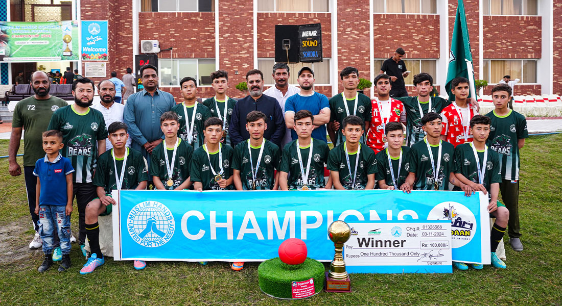 مسلم ہینڈز اسکولز نیشنل فٹ بال چیمپئن شپ میں ملک بھر سے12 ٹیموں نے حصہ لیا جس میں، پشاور ٹائیگرز، کوئٹہ بیئرز، راولاکوٹ ایگلز ، وزیر آباد فالکن، بھیرہ مارخور، سوہدرہ سپارٹن، لاہور لائنز، اسلام آباد پینتر، باغ اسٹیلن ،کوٹلی واریئرز، بالاکوٹ وولفو،گجر خان لیپٹس شامل تھی۔ ایونٹ میں مجموع طور پر 20 میچز کھیلے گئے۔