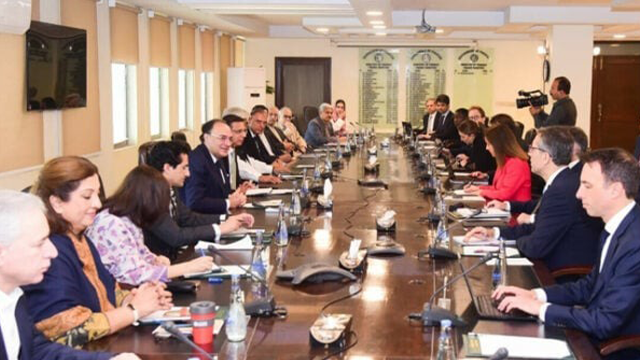 تفصیلات کے مطابق چیف نیتھن پورٹرکی قیادت میں آئی ایم ایف کا وفد وزارت خزانہ پہنچا ، جہاں وزیرخزانہ محمد اورنگزیب نےوفد کوخوش آمدید کہا۔ آئی ایم ایف مشن چیف نیتھن نے وزیرخزانہ محمد اورنگزیب سے ملاقات کی، ملاقات میں وزیرمملکت علی پرویز ملک، گورنر اسٹیٹ بینک، چیئرمین ایف بی آر اور وزارت خزانہ کے اعلیٰ حکام بھی موجود ہیں۔