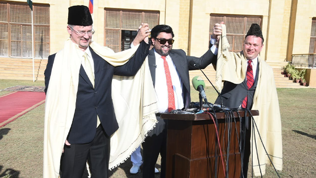 روسی سفیر البرٹ کوریو نے کہا کہ معاشی حالات میں روس اپنے برادر ملک کے ساتھ کھڑا ہے۔ گورنر سندھ نے روسی مہمانوں کی تواضع برنس روڈ کے مشہور برگر اور مٹکا چائے سے کی اور اس ذائقہ دار ضیافت کو مہمانوں نے خوب پسند کیا۔ روسی سفیر نے گورنر سندھ کے ہمراہ قائد گیلری کا دورہ بھی کیا۔ کامران تیسوری کی جانب سے روسی مہمانوں کو جناح کیپ اور شال بھی پیش کی گئی۔