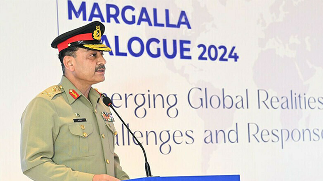 آرمی چیف جنرل عاصم منیر نے کہا ہے کہ دنیا میں امن و استحکام کے لیے اپنا کردار ادا کرتے رہیں گے اسلام آباد میں مارگلہ ڈائیلاگ 2024کی خصوصی تقریب سے خطاب کرتے ہوئے آرمی چیف جنرل عاصم منیر نے کہا کہ حالیہ برسوں میں دنیا کو کئی چیلنجز کا سامنا ہے جن میں غلط اور گمراہ کن معلومات کا تیزی سے پھیلاؤ ایک اہم چیلنج ہے، دنیا میں کئی تبدیلیوں کے پیش نظرغیر ریاستی عناصر کا اثر و رسوخ بڑھ جانا بھی ایک اہم چیلنج ہے۔
