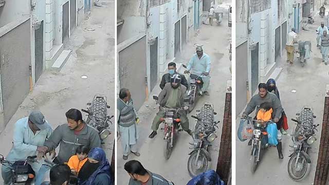 کراچی کے علاقے سعود آباد میں 3 ڈاکوؤں نے میاں اور بیوی کو گھر کی دہلیز پر ہی لوٹ لیا، ملزمان نے خاتون سے دست درازی کرتے ہوئے ہاتھ سے چوڑیاں اور انگوٹھیاں بھی اتروا لیں۔ واقعہ کی سی سی ٹی وی ویڈیو سوشل میڈیا پر وائرل ہوگئی، ویڈیو میں دیکھا جاسکتا ہے کہ میاں اور بیوی بچی کے ہمراہ موٹر سائیکل پر گھر کے باہر پہنچتے ہیں۔ دو موٹر سائیکلوں پر سوار 3 ملزمان میاں بیوی کا پیچھا کرتے ہوئے انہیں گھر کے باہر گھیر لیتے ہیں۔