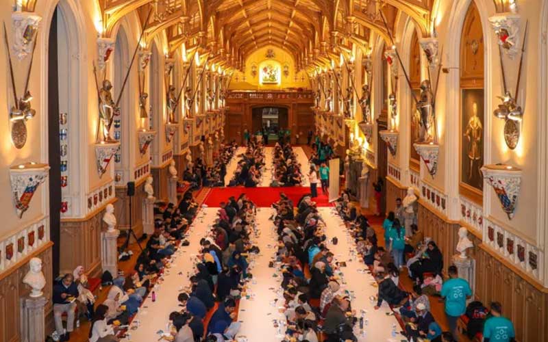برطانوی شاہی محل ونڈسر کیسل کے اسٹیٹ اپارٹمنٹس میں ہزار سالہ تاریخ میں پہلی بار افطار کا انعقاد کیا گیا۔ بی بی سی کی رپورٹ کے مطابق اتوار کو سینٹ جارج ہال میں 350 سے زیادہ لوگ رمضان کا روزہ افطار کرنے کے لیے جمع ہوئے۔