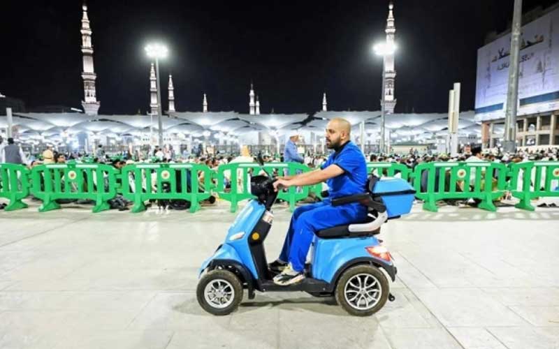 مسجد نبوی میں زائرین کو بروقت طبی امداد فراہم کرنے کے لیے ایمبولینس اسکوٹر سروس متعارف کرائی گئی ہے۔