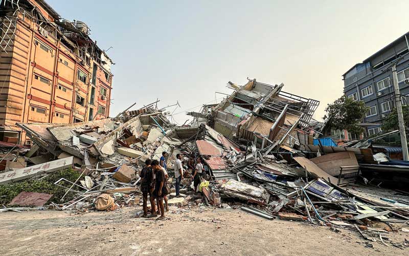 خبر ایجنسی کا بتانا ہے کہ ریسکیو ٹیمیں ملبے میں دبے افراد کو نکالنے میں مصروف ہیں جبکہ امریکی ایجنسی نے زلزلے میں 10 ہزار سے زائد افراد کی ہلاکتوں کا خدشہ ظاہر کیا ہے۔ میڈیا رپورٹس کے مطابق میانمار کے دوسرے بڑے شہر منڈالے میں آنے والا زلزلہ اس قدر شدید تھا کہ اس کے جھٹکے 900 کلو میٹر دور تھائی لینڈ کے دارالحکومت بنکاک میں بھی محسوس کیے گئے جہاں متعدد تعمیراتی اسٹرکچر اور عمارتیں منہدم ہو گئیں۔